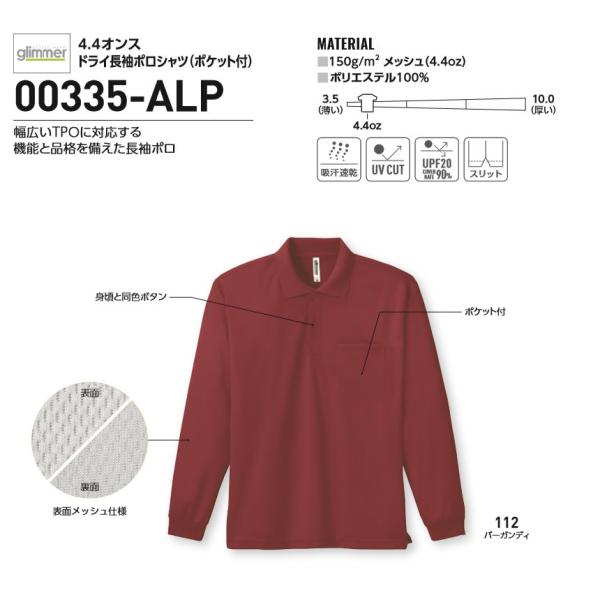ポロシャツ メンズ ドライ グリマー 無地 glimmer 4.4オンス 長袖 ポケット付き スポーツ ゴルフ ビズポロ ユニフォーム 00335-ALP 通販A15