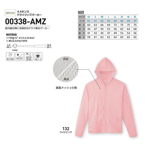 ジャケット メンズ レディース 無地 長袖 glimmer グリマー 4.4オンス ドライ ジップジャケット UVカット 日焼け対策 イベント ユニフォーム 00358-AMJ 通販M3