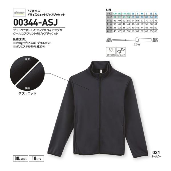 メンズ 長袖 glimmer グリマー 7.7オンス ドライ スウェット ジップジャケット 無地 スエット 上 スポーツ アウトドア ユニフォーム 吸汗 速乾 00344-ASJ 通販A3