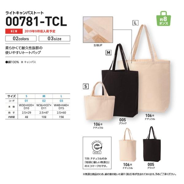 トートバッグ メンズ レディース ユニセックス ライト キャンバス トート 無地 バッグ 鞄 男女兼用 エコバッグ お買い物バッグ Lサイズ 00781-TCL 通販M3