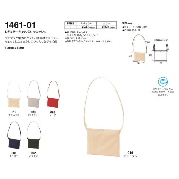 サコッシュ バッグ 無地 メンズ レディース UnitedAthle ユナイテッドアスレ レギュラーキャンバスサコッシュ ユニセックス 男女兼用 カラー 1461-01 通販M3