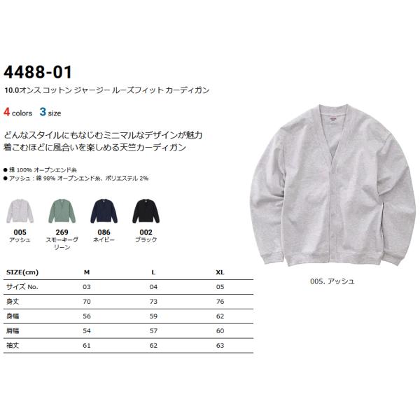 カーディガン 無地 メンズ UnitedAthle ユナイテッドアスレ 10.0オンス コットンジャージールーズフィットカーディガン 4488-01 通販A3