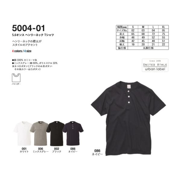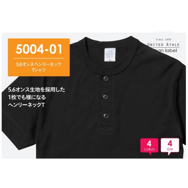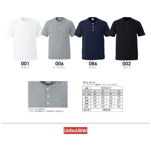 Tシャツ 半袖 メンズ 無地 ヘンリーネック UnitedAthle ユナイテッドアスレ 5.6オンス ヘンリーネックTシャツ ユニフォーム 5004-01 通販M15