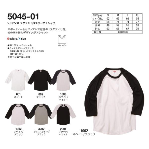 tシャツ 無地 7分袖 メンズ UnitedAthle ユナイテッドアスレ 5.6オンス ラグラン3/4スリーブTシャツ ユニフォーム 5045-01 通販A15