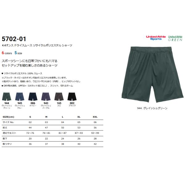 ハーフパンツ ドライ メンズ 無地 UnitedAthle ユナイテッドアスレ 4.4オンス ドライスムース リサイクルポリエステル ショーツ 吸汗 速乾 5702-01 通販A15