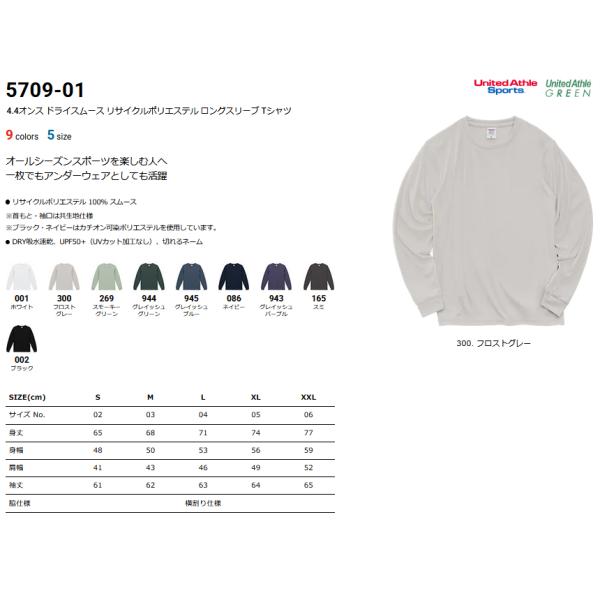 Tシャツ ドライ メンズ 長袖 無地 UnitedAthle ユナイテッドアスレ 4.4オンス ドライスムース リサイクルポリエステル ロングスリーブTシャツ 5709-01 通販A15