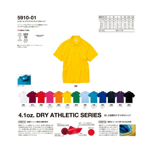 ポロシャツ 半袖 メンズ 無地 UnitedAthle ユナイテッドアスレ 4.1オンス ドライアスレチックポロシャツ スポーツ ゴルフ イベント お揃い 5910-01 通販A15