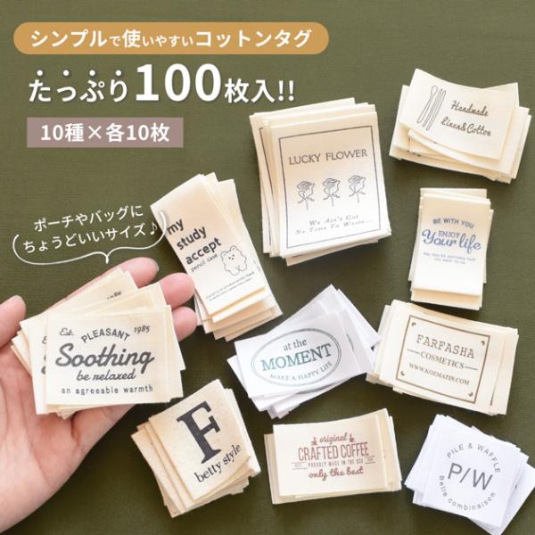 コットン タグ たくさん アソート セット 10種×10枚 合計100枚 綿タグ 布タグ コットンタグ テープ ハンドメイドタグ ワッペン 綿タグ プリント ワンポイント ラベル 縫い付け シンプル 綿 福袋 おしゃれ ハンドメイド 手作り