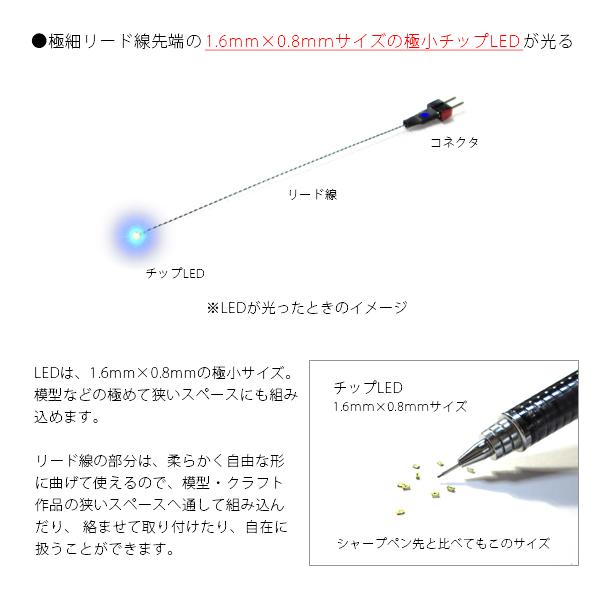 リード線の先端に付いている「1.6mm×0.8mmサイズの極小チップLED」が光ります。