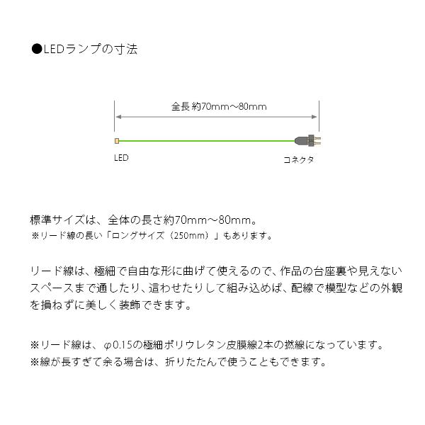 チップ型LEDランプ 電球色(超高輝度) 標準サイズ70mm〜80mm【極細リード線&コネクタ付】