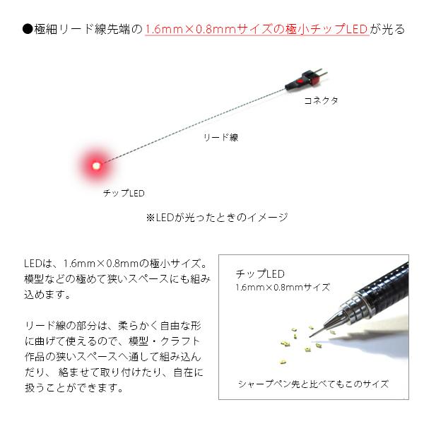 リード線の先端に付いている「1.6mm×0.8mmサイズの極小チップLED」が光ります。