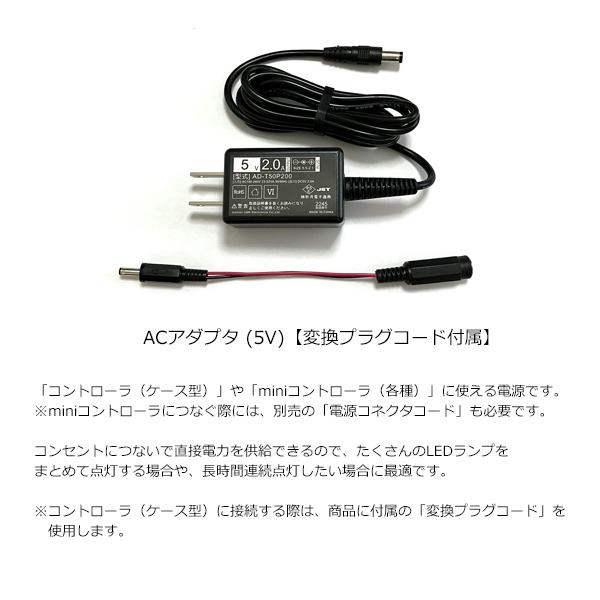 「コントローラ(ケース型)」や「miniコントローラ」でLEDランプを点灯させるための電源です。