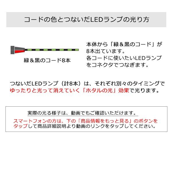 つないだ8本のLEDランプがそれぞれ別々のタイミングで、ゆったりと光って消えていく「ホタルの光」の効果で光ります。