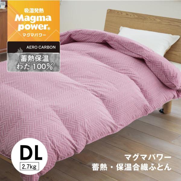 吸湿発熱 蓄熱保温 マグマパワー合繊ふとん ダブルロングサイズ (190×210cm) 蓄熱保温綿100% ピンク エアロカーボン 2.8kg AERO CARBON