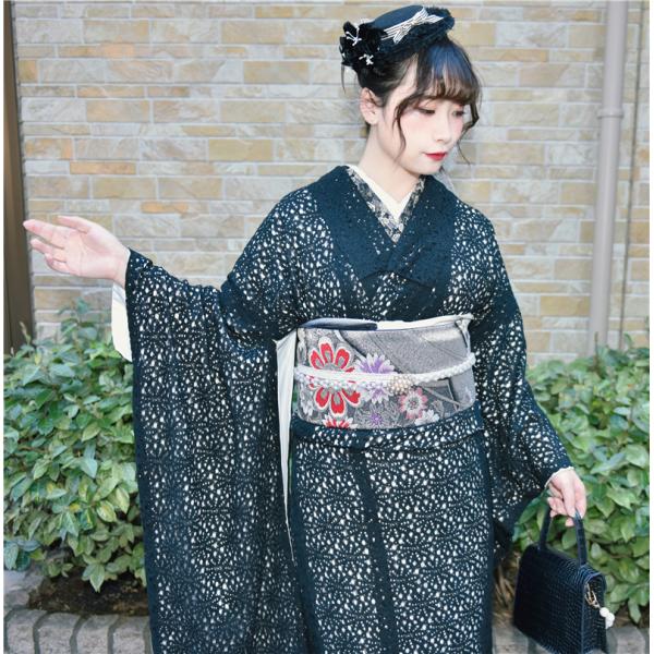 振袖 レース振袖 成人式 白総レース 黒 レース着物