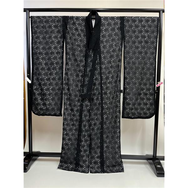 レース羽織 【送料無料】 花柄 総レース 羽織 モダン 黒 通年 ポリエステル 袷着物・広衿仕立て羽織 レトロ モダン ラッセル レース レース羽織 着物 レース着物