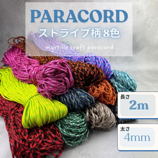 パラコード 4mm ストライプ柄 8色 長さ2m パラコード 紐 スマホショルダー ブレスレット キーホルダー 手芸 ハンドメイド パステル くすみ ミリタリー 蛍光