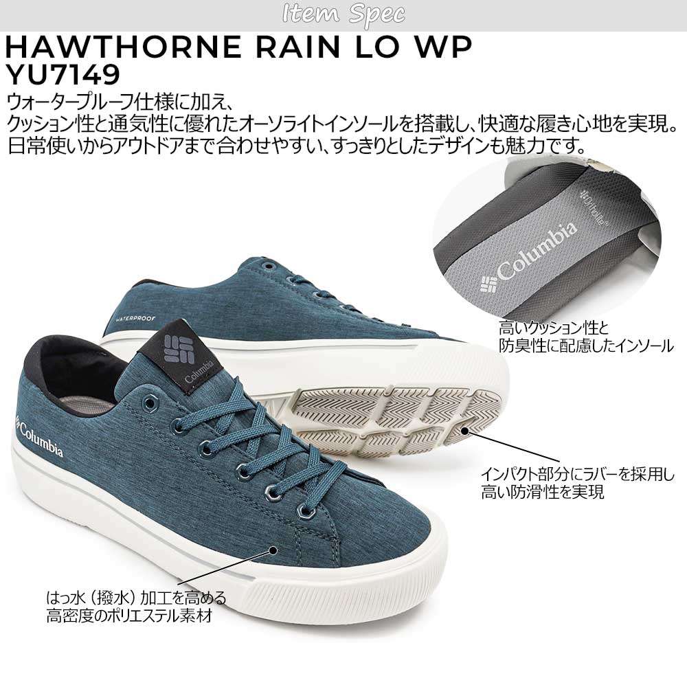 コロンビア スニーカー 防水 ホーソンレイン ロー WP レインシューズ YU7149 ローカット メンズ レディース 26春夏新作