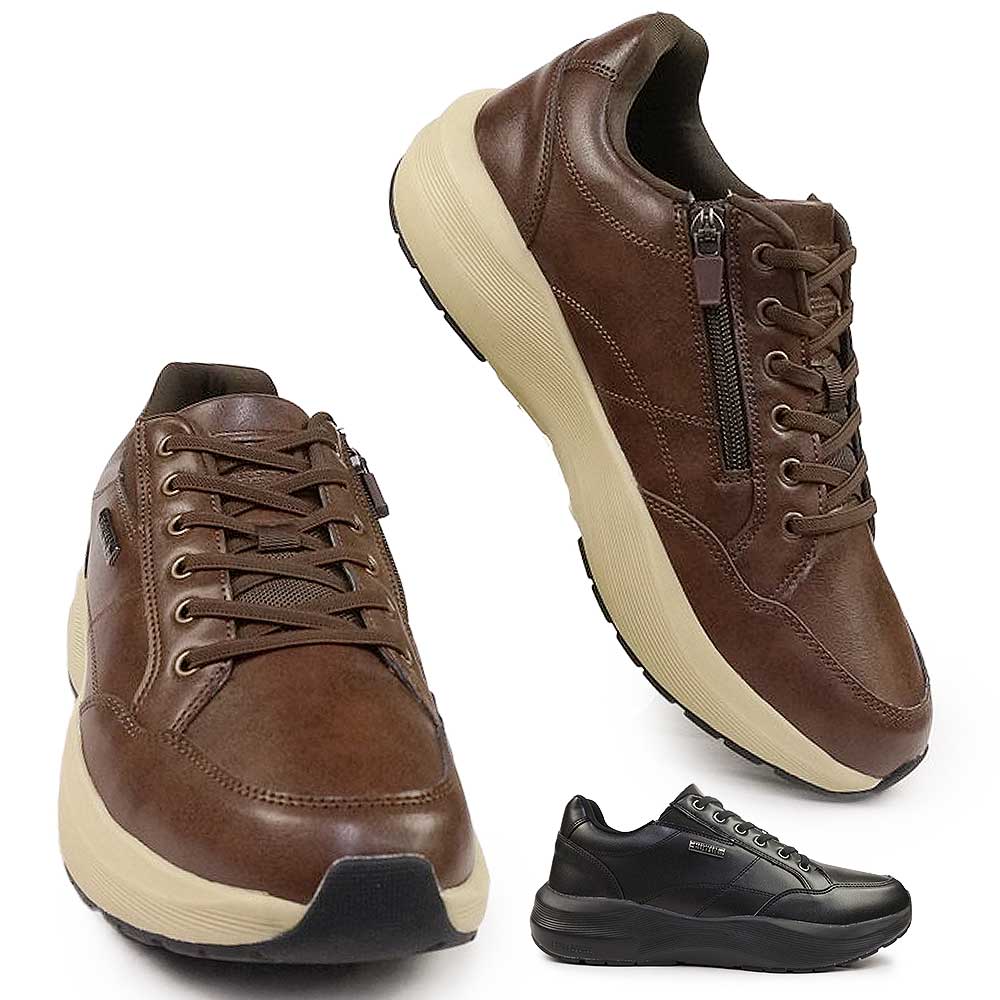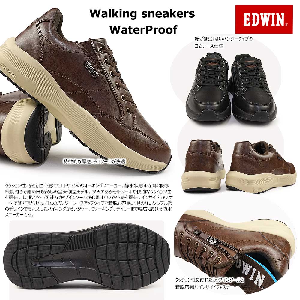 エドウィン 防水 ウォーキング スニーカー メンズ EDW-7368 紐がほどけない 厚底 カジュアルシューズ