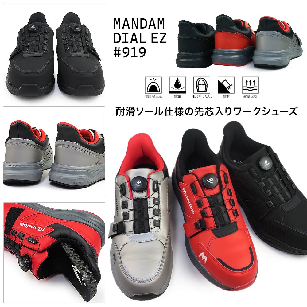 安全靴 先芯入り ローカット メンズ スニーカー 4E 樹脂先芯 マンダム DIAL EZ #919 幅広 丸五 25秋冬新作