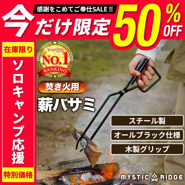火ばさみ キャンプ 薪バサミ 炭バサミ ファイヤートング バーベキュー 焚き火 焚火 用 長さ42cm スチール 鉄製 オールブラック仕様 黒色