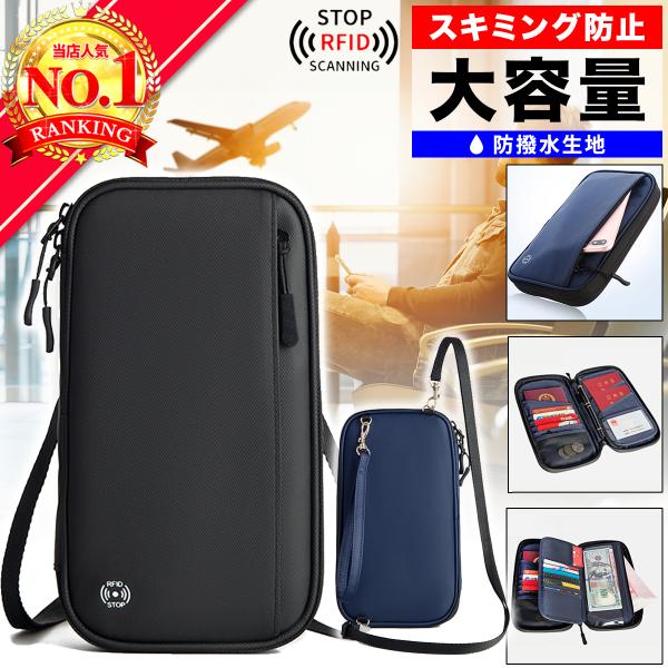 パスポートケース バッグ ポーチ スキミング防止 大容量 海外旅行 セキュリティ カードケース 肩掛け ストラップ 財布 コンパクト 旅行 防犯 RFID