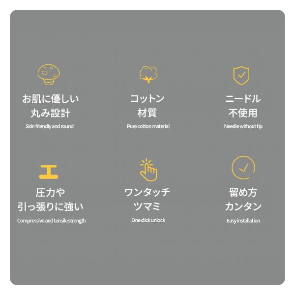 お肌に優しい丸み設計/コットン材質/ニードル不使用