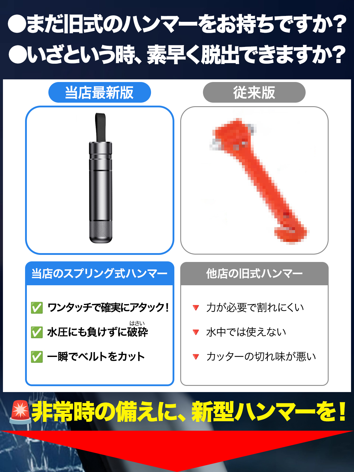 ●工具不要で誰でも使える緊急脱出ハンマー