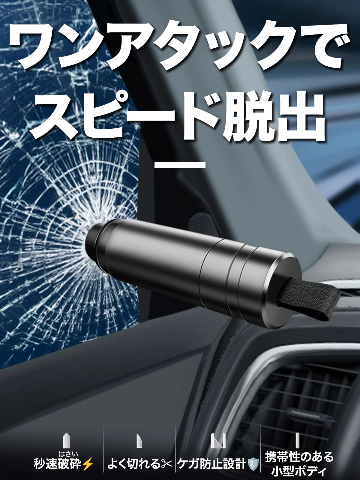 ●サイドガラスを瞬時に破壊+ベルトカッター搭載