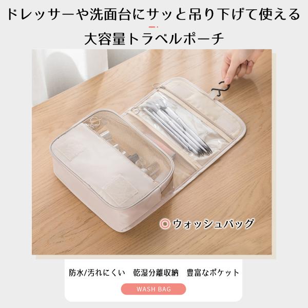 メイクポーチ トラベルポーチ 化粧ポーチ コスメポーチ 旅行 出張 洗面用具 吊り下げ フック 大容量 大きめ 小物入れ 収納 小物 防水 メッシュ