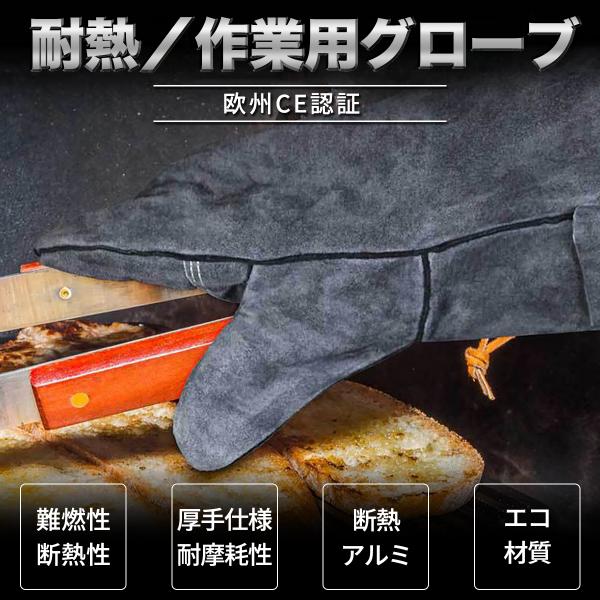 耐熱グローブ 耐火グローブ 耐熱手袋 キャンプ 料理用 レザー ロング 手袋 牛革 本革 耐熱 防火 アウトドア BBQ バーベキュー 薪 焚き火 ストーブ グレー