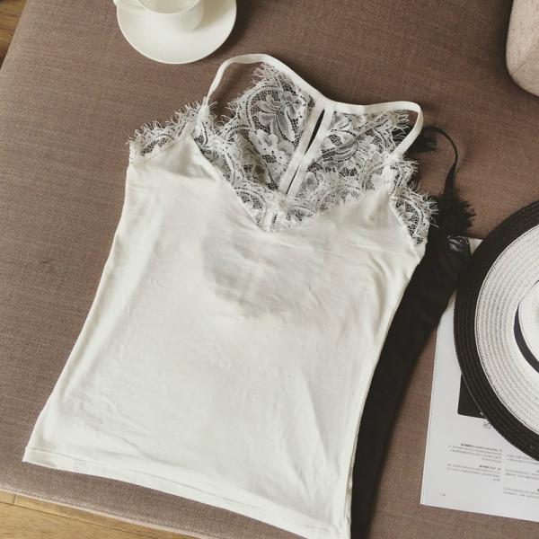インナーにも、重ね着してもオシャレ♪バックレース切り替えキャミソール 伸縮性レース インナー