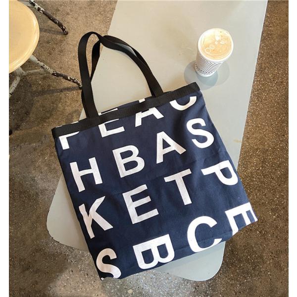 大きいな英文字プリント キャンバス素材 底マチ付きで大容量!!