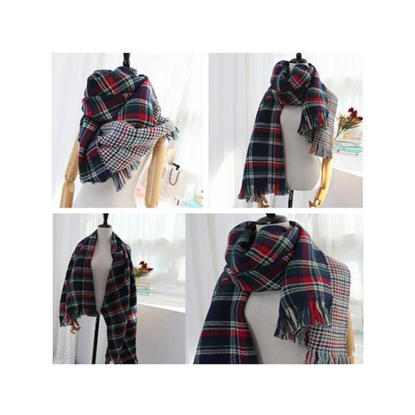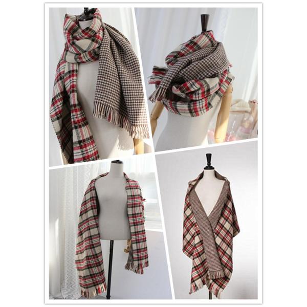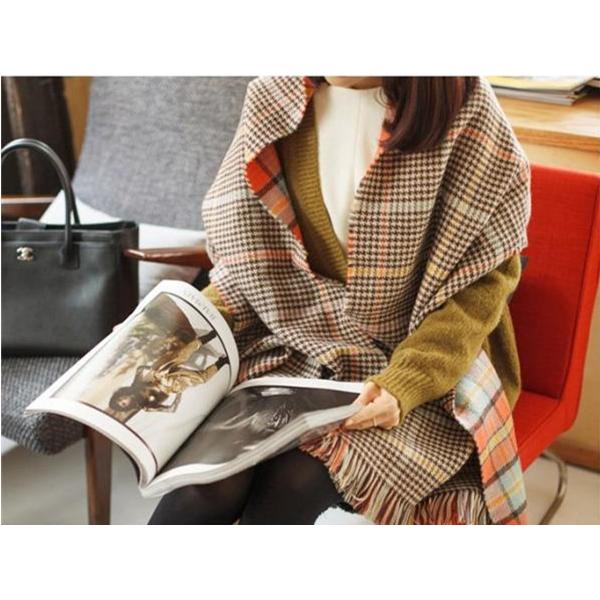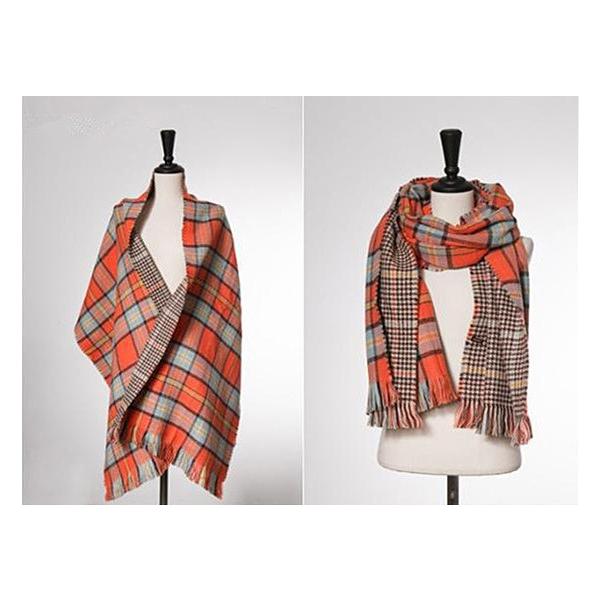 秋冬ストール 大判 厚手 ロング レディース 可愛いダブルフェイスチェック柄マフラー ストール