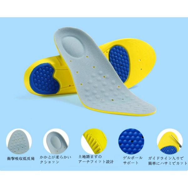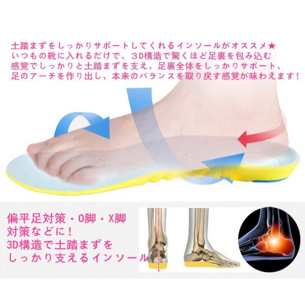 疲労低減 衝撃吸収低反発 インソール男女兼用中敷きサイズ調整可能 かかと クッション土踏まず アーチフィット偏平足対策・O脚・X脚対策などに