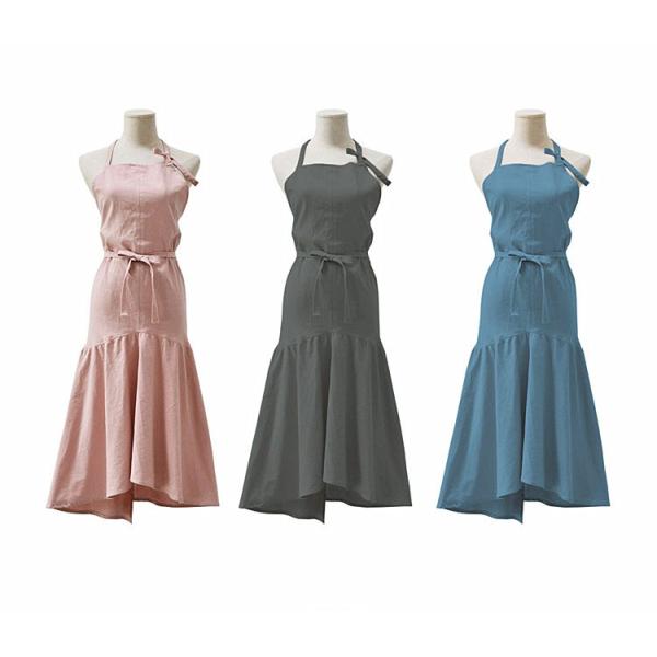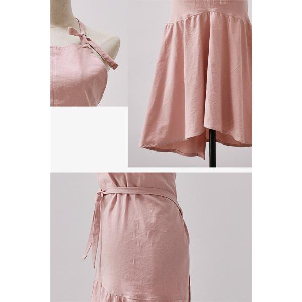 ナチュラル綿麻ラブリーフリルエプロンリネンフリルワンピースレディースロングかわいいおしゃれエプロンワンピース結婚祝い