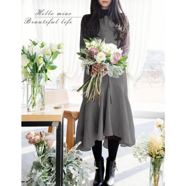 下部にアクセントをおいたシルエットが特徴的です、ひもを後ろでも前にも結んでインナーのデザインに合わせて胸元のあき具合を調整できます。