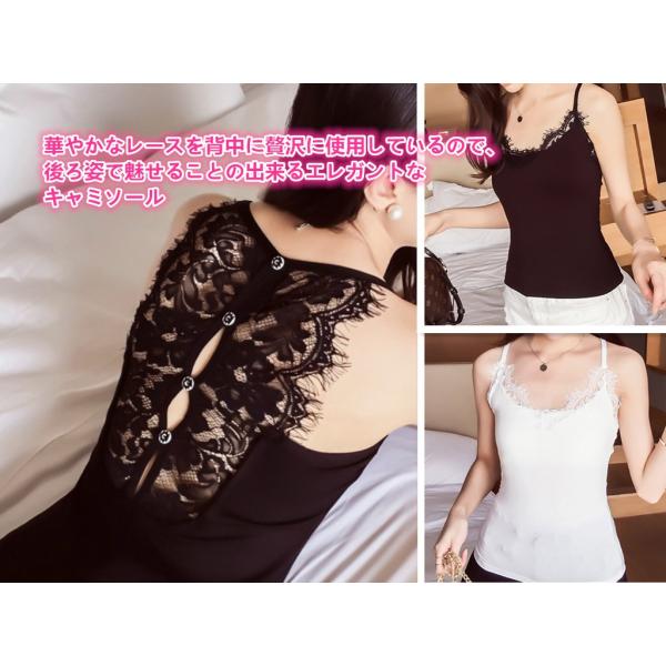インナーにも、重ね着してもオシャレ♪バックレース切り替えキャミソール 伸縮性レース インナー