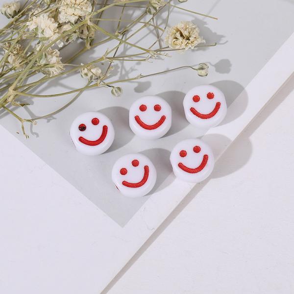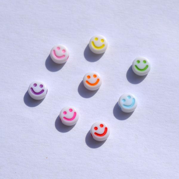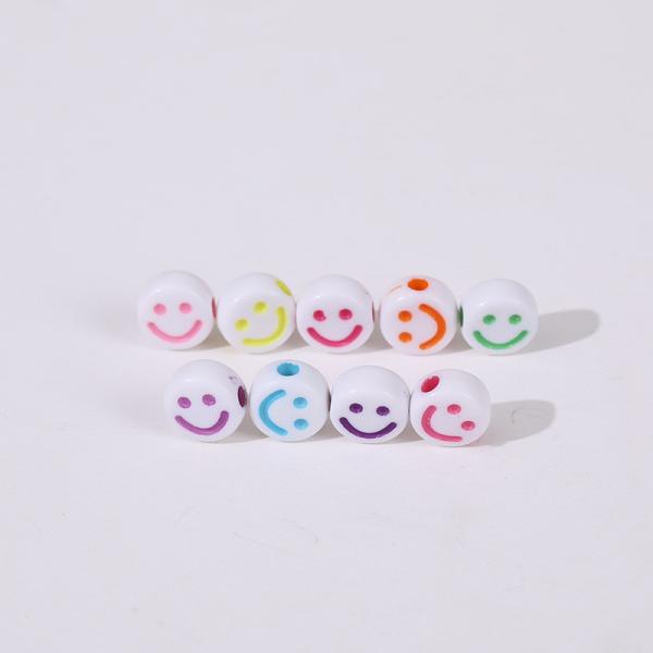 30個 10mmニコちゃん スマイルビーズ ホワイト×カラフル アクリルビーズ アクセサリーパーツ DIY ハンドメイド 手芸素材ラウンド型スマイリー b1525543