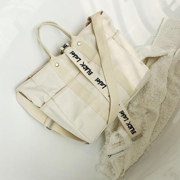 大容量多収納2WAYキャンバス トート バッグショルダー 付き レディース肩掛け無地シンプル通勤通学旅行マザーズバッグシンプル ロゴ ラベル トレンド かわいい