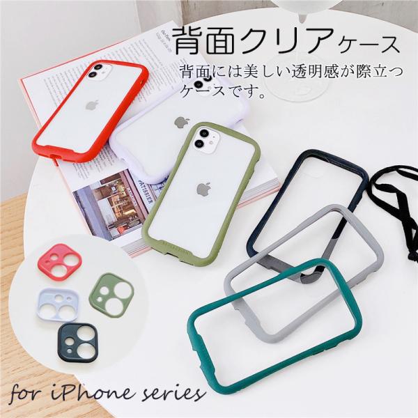 iFace風 iPhone 12 12Pro 12ProMax 12mini ケース アイフェイス カバー 背面クリア 透明 スマホ TPU 耐衝撃 シンプル 可愛い ストラップホール ワイヤレス充電