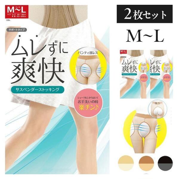 セール 選べる2カラー 穴あきパンティ部レス サスペンダーストッキング 2枚セット ムレない レディース