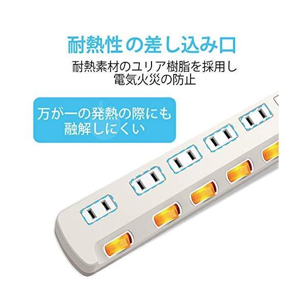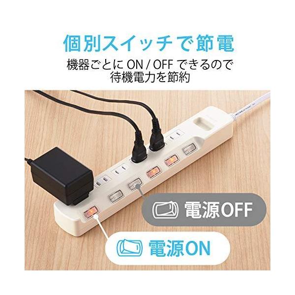 エレコム 電源タップ コンセント 雷ガード 個別スイッチ ほこりシャッター付 6個口 3m ホワイト T-K6A-2630WH