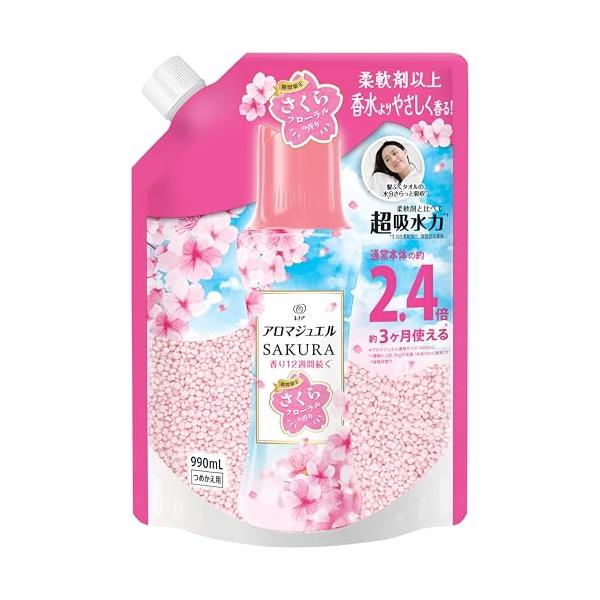 【期間限定】レノア アロマジュエル SAKURA 衣料用香り付けビーズ さくらフローラルの香り 詰め替え 990mL