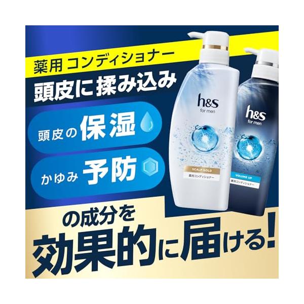 ・h&s薬用シャンプーの後にh&s薬用コンディショナーをご使用いただくと、通常の200%の量の薬用成分が頭皮に留まります。h&sフォーメンシャンプーと一緒に継続的にご使用いただくとより効果的です。(※当社非医薬部外品コンディショナー使用時と比べて)