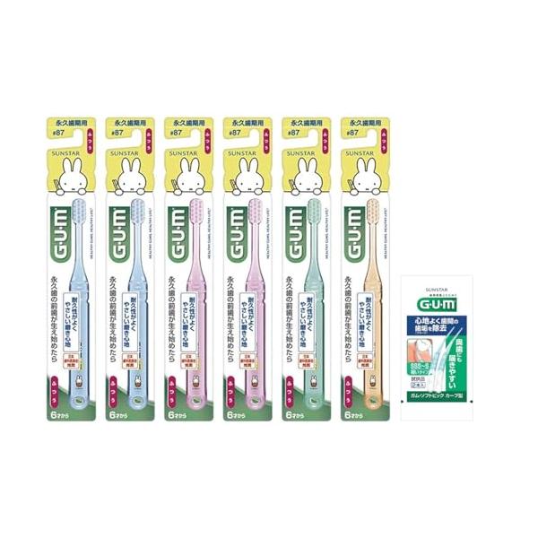 GUM(ガム) こども歯ブラシ #87 [永久歯期用 6歳~ ふつう] 6本パック+おまけ付き まとめ買い 子供用 ※色は選べません【.co.j