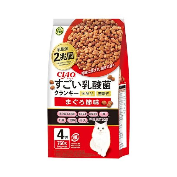 チャオ (CIAO) すごい乳酸菌 クランキー まぐろ節味 190g×4袋 猫用 ドライフード
