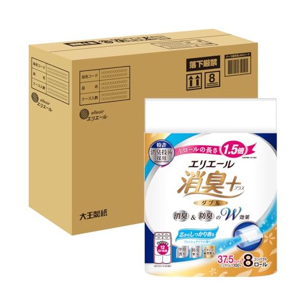 エリエール トイレットペーパー 消臭プラス(+) 1.5倍巻き 37.5m×32ロール(8ロール×4パック) ダブル パルプ100% フレッシュ