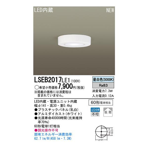 LSEB6117KLE1 パナソニック 配線ダクト取付型LEDスポットライト[LSシリーズ](7.4W、拡散タイプ、電球色)【LGS3501LLE1同等品】