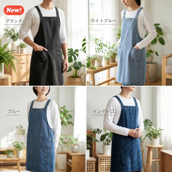エプロン かぶるだけ デニムエプロン 大きいサイズ おしゃれ ワーク レディース メンズ ブラック カフェ デニム 綿100% 保育士 飲食
